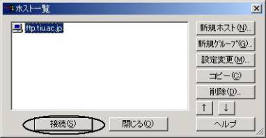 ホスト一覧ウィンドウが開きます。[ftp.tiu.ac.jp]が選択されていることを確認し、