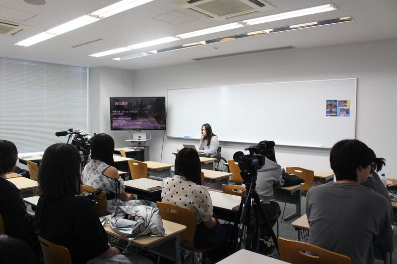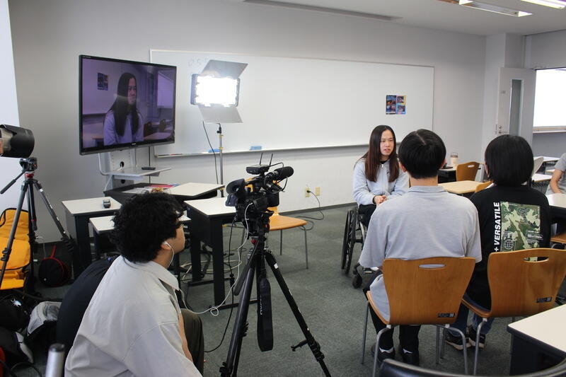 この特別講義には、国際メディア学科の科目「映像制作Ⅱ」を履修する学生も参加。講演や実技の様子を撮影したほか、学生インタビュアーによる齊藤さんへの取材も行い、その模様もカメラに収めました。学生たちは撮影した映像素材を自ら編集し、1本の作品としてまとめる予定です。
