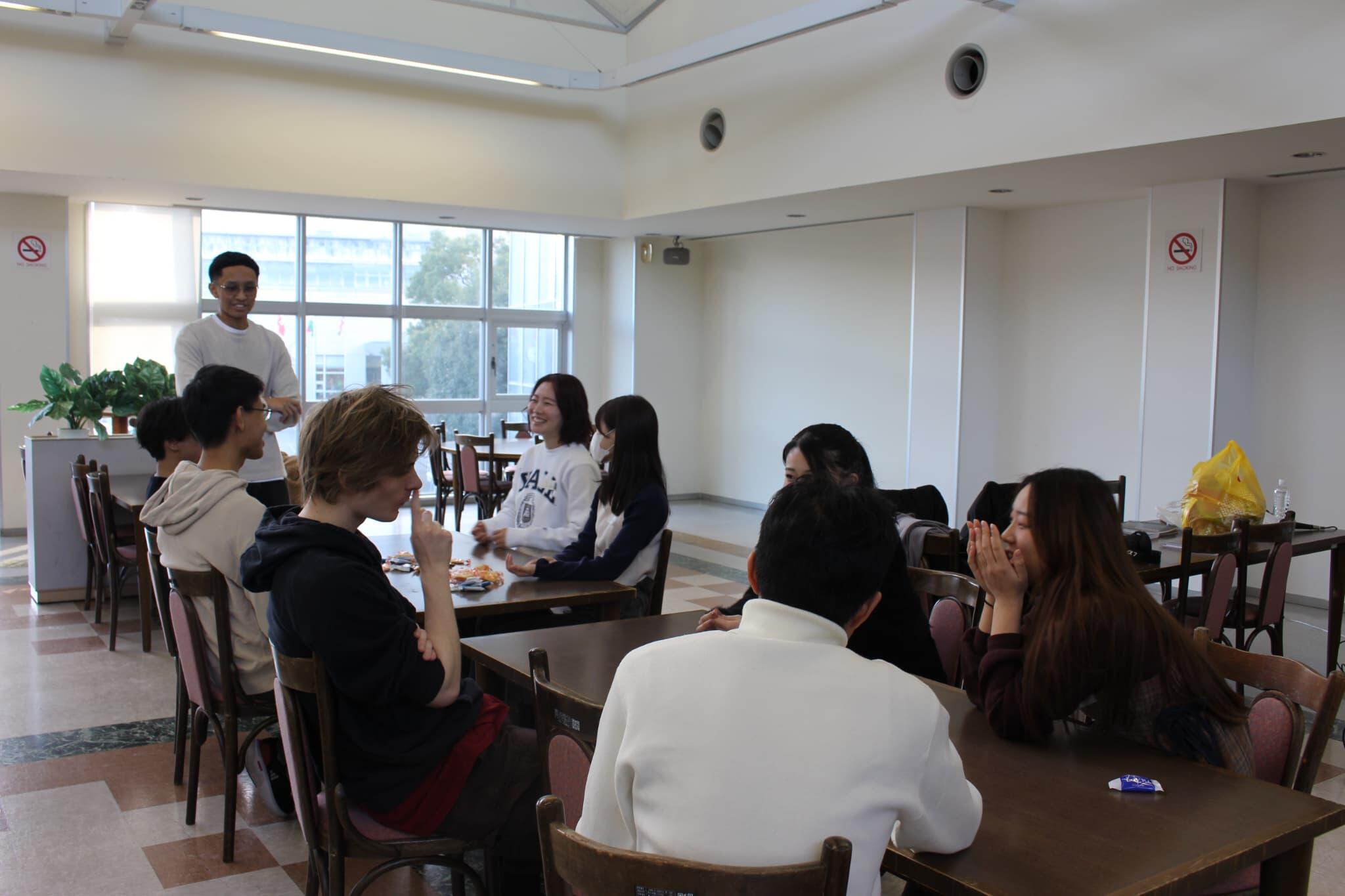 E-Trackとは、授業をすべて英語で行い、英語で学位を取得するプログラムで、多くの外国人留学生が在籍しています。本イベントには、学部を超えて15名ほどの学生が参加しました。