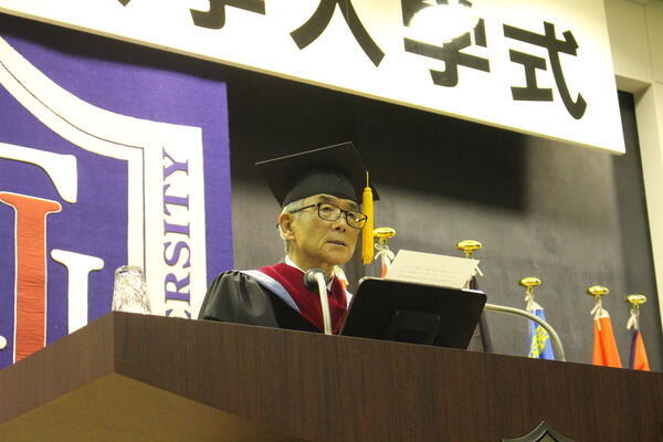 式典では、倉田信靖理事長・総長による式辞、平山龍水学長の式辞、村﨑まつりさん(人間社会学部)による新入生宣誓などが行われ、厳かでありながら新たな門出を祝うにふさわしい雰囲気となりました。