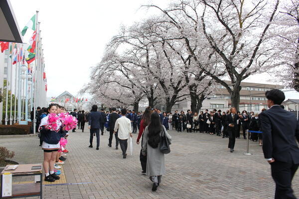 正門前で行われた、各クラブによるお出迎え