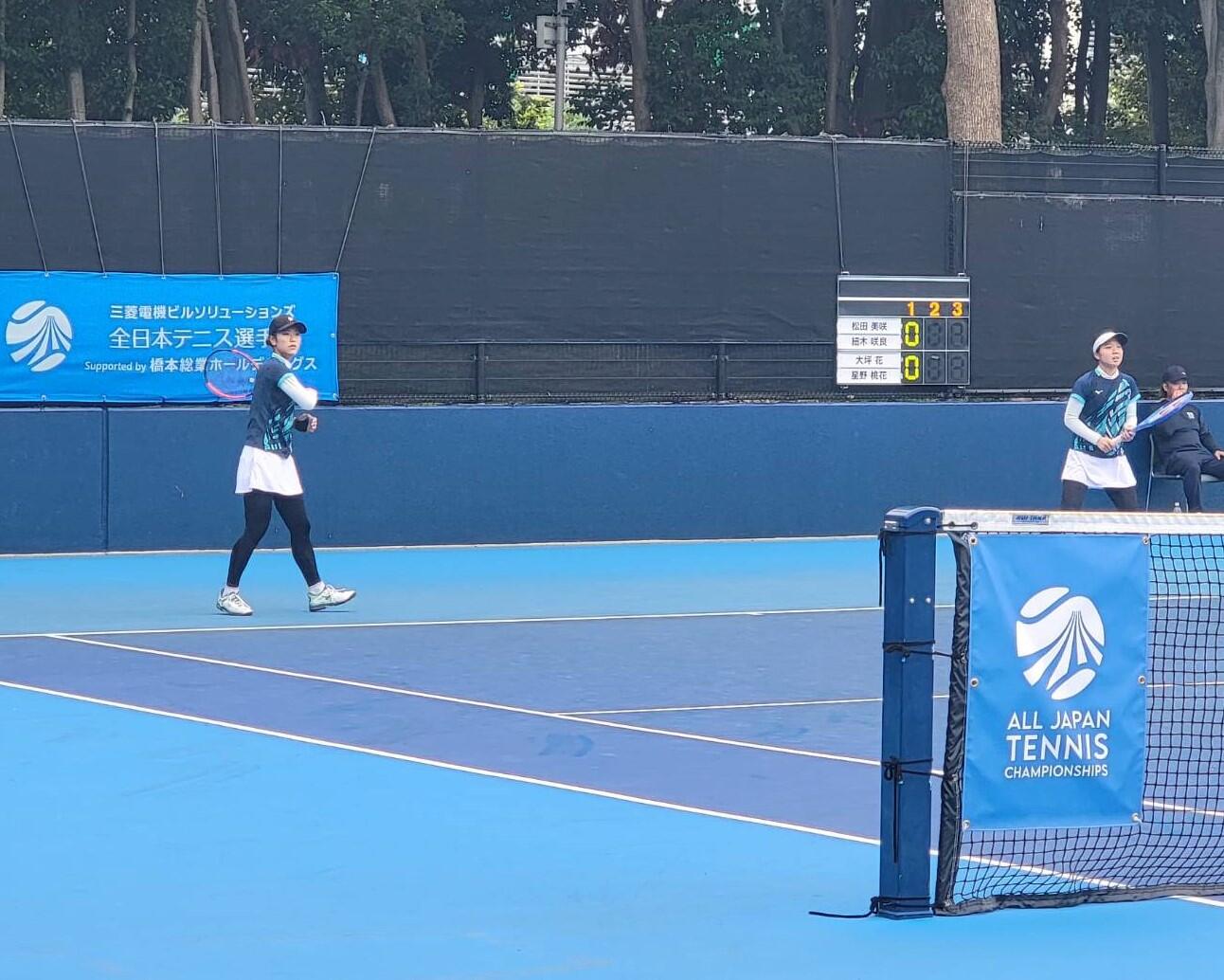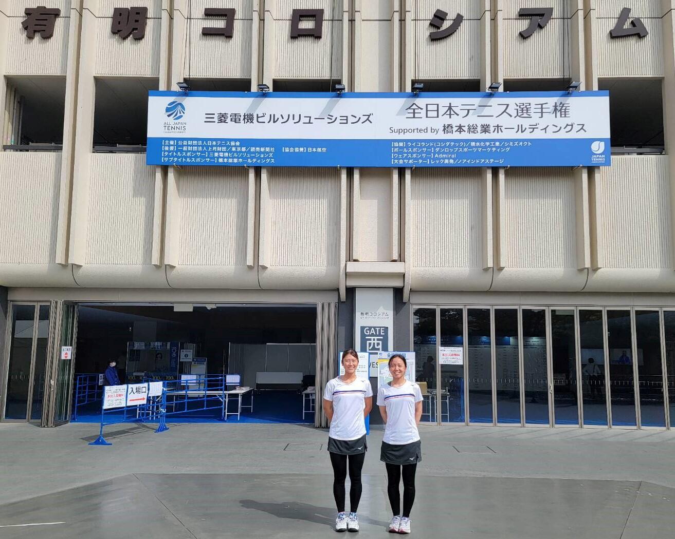 国内最高峰の大会「三菱電機ビルソリューションズ 全日本テニス選手権100th」に、人間社会学部4年の星野桃花選手と大坪花選手が出場し、