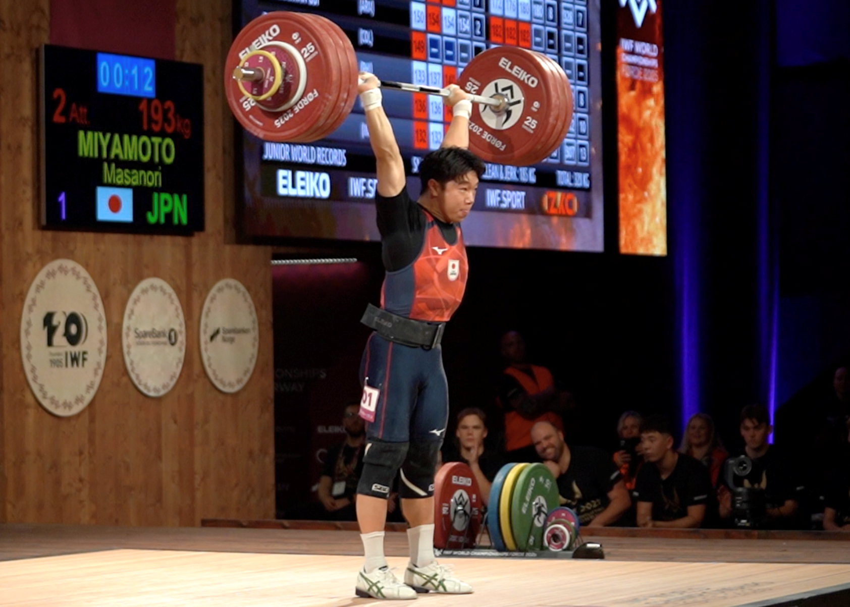 新階級71kg級に出場した宮本昌典選手は、スナッチで152kgに成功し3位につけると、続くクリーン&ジャークでは193kgを成功させ、クリーン&ジャークおよびトータルで銀メダルを獲得しました。